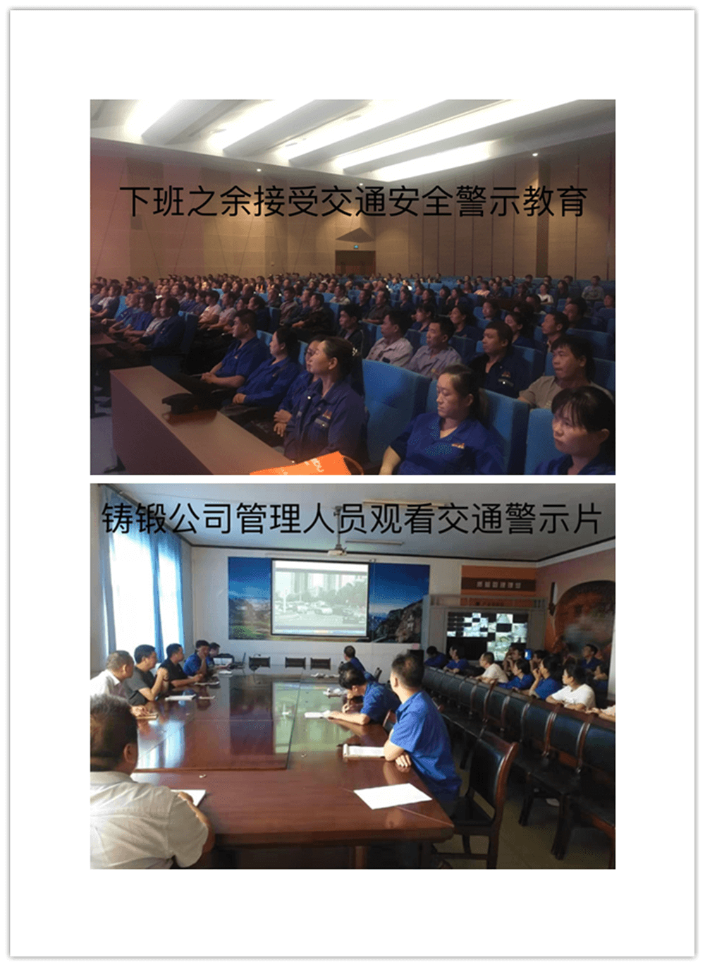 開(kāi)展警示片宣傳教育活動(dòng)。集團(tuán)公司按單位分三次組織1000余名員工觀看交通事故警示教育片,集團(tuán)公司子公司林鋼、鑄鍛也積極按照方案要求組織收看教育片,同時(shí)各單位還利用本部門(mén)的微信工作群進(jìn)行轉(zhuǎn)發(fā)收看,達(dá)到警示教育全面覆蓋之目的。