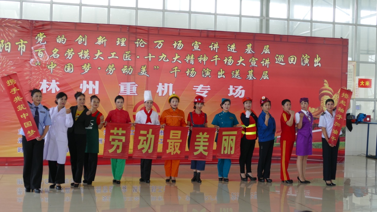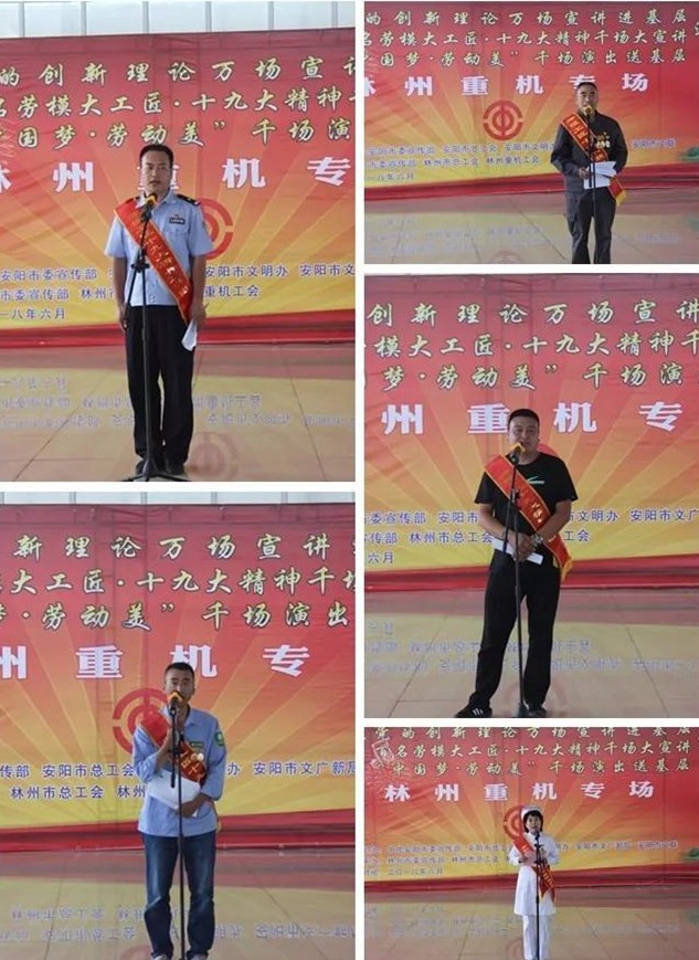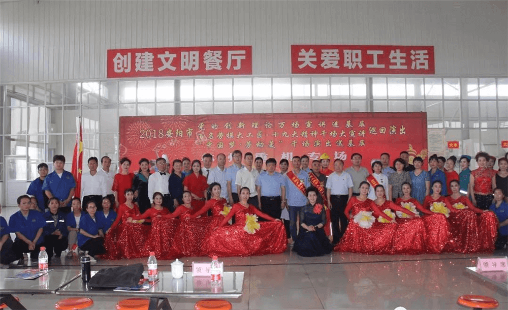 6月6日下午,安陽市黨的創(chuàng)新理論萬場宣講進(jìn)基層、百名勞模大工匠?十九大精神千場大宣講暨“中國夢 勞動(dòng)美”千場演出送基層巡回演出活動(dòng)走進(jìn)林州重機(jī)。河南省委宣傳部副部長尹書博,省委宣傳部理論處副處長楊小強(qiáng),省委宣傳部理論教育講師團(tuán)副團(tuán)長趙琳,安陽市委宣傳部副部長冀曉東,安陽市委宣傳部理論科長龍晨曦,安陽市總工會(huì)宣教部部長張艾敏,林州市委常委、宣傳部長王獻(xiàn)青,林州市總工會(huì)主席栗旺生,副主席張曉云, 公司黨委副書記、副總經(jīng)理趙正斌,黨委委員、工會(huì)主席路建存及職工代表300余人等出席活動(dòng)。