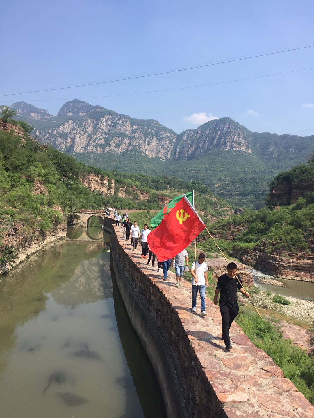 7月1日當(dāng)天,公司黨委組織各支部成員、優(yōu)秀共產(chǎn)黨員及入黨積極分子重走紅旗渠源頭。在去紅旗渠源頭的途中,還進行了有關(guān)紅旗渠方面的知識競賽答題活動,大家積極踴躍的搶答,在答題的基礎(chǔ)上,還穿插紅色經(jīng)典歌曲,特別是郭釧總經(jīng)理唱的《映山紅》,把我們帶回到了烽火連天的革命年代,整個互動環(huán)節(jié)可謂是精彩不斷,歌聲和掌聲響徹天際。9時40分,大家從源頭開始向王家莊徒步進發(fā),在烈日炎炎之下,黨員們個個汗流浹背,經(jīng)過3個小時12公里的徒步旅程,于12時40分到達(dá)活動終點―王家莊。經(jīng)過徒步重走紅旗渠活動,大家親身感悟到了 “自力更生、艱苦創(chuàng)業(yè)、團結(jié)協(xié)作、無私奉獻(xiàn)”的紅旗渠精神。