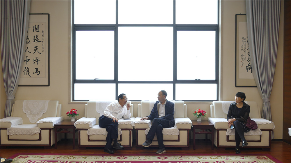 儀式結(jié)束后, 林州市總工會(huì)主席栗旺生與公司董事長(zhǎng)郭現(xiàn)生就企業(yè)文化陣地建設(shè)進(jìn)行了座談交流與探討。